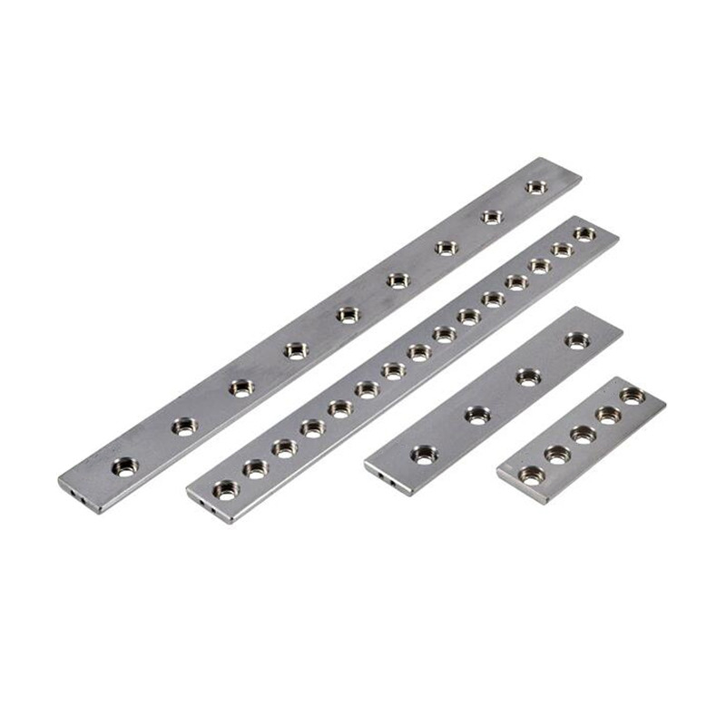 Elementos de referência para máquinas com tabela de linha zero. O comprimento (L), o espaçamento dos furos (C) e o espaçamento das bordas dos furos (B) dos elementos de referência endurecidos correspondem à máquina em questão.